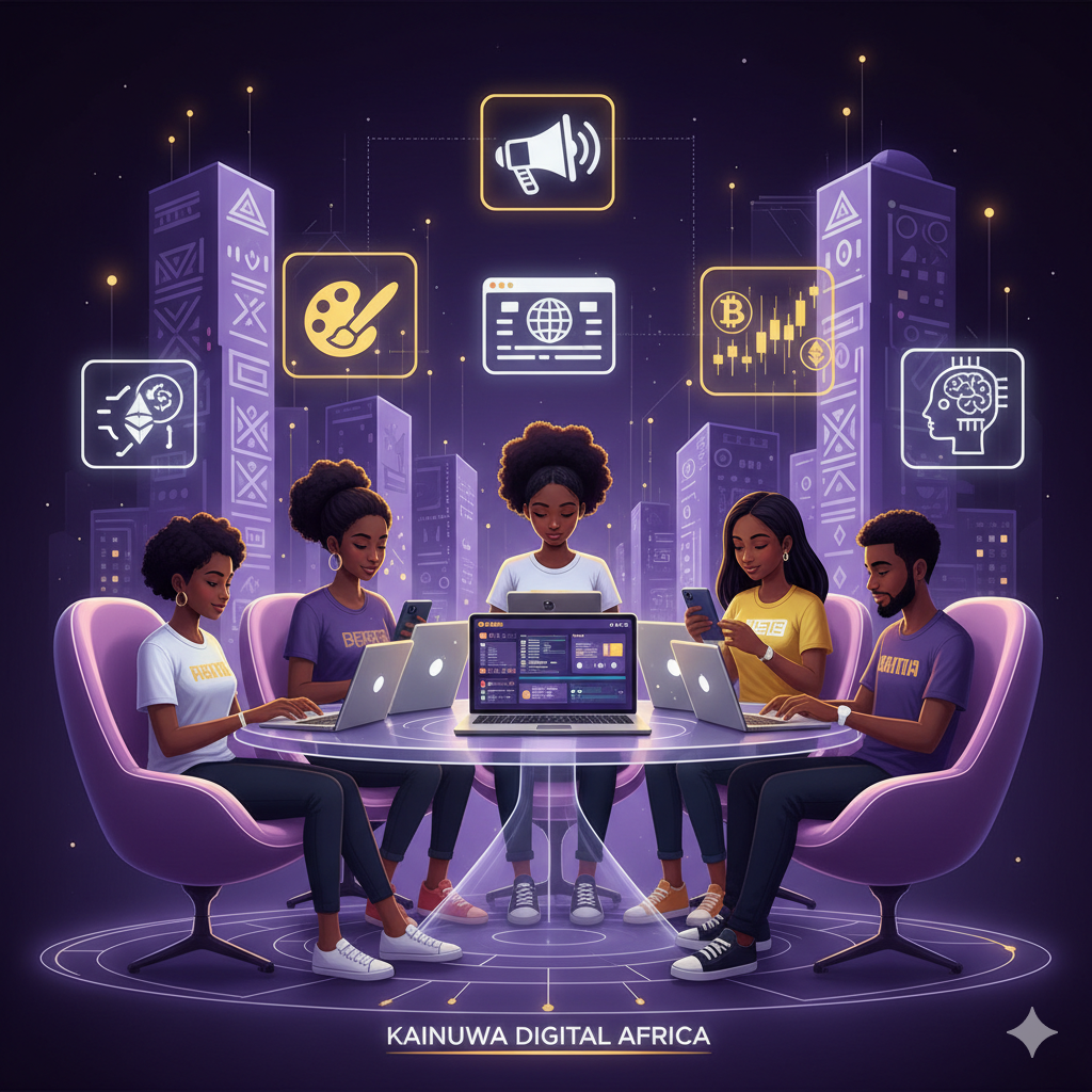 Kainuwa Digital Academy delivers practical courses in Hausa and English—covering digital, creative, and vocational skills. As you learn, you earn KNW Coins you can redeem on the platform.